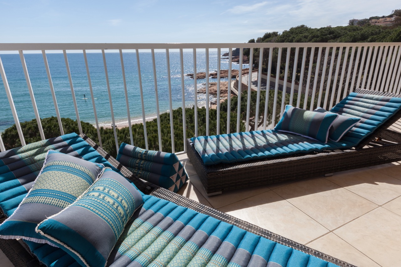 Fabelhafte Ferienwohnung auf dem Boulevard in S'Agaró mit direktem Zugang zum schönen Sandstrand von Sant Pol. Ruhige Lage am Ende der Promenade und ein sonniges Balkon mit tollem Meerblick. Geräumiges Interiör, Qualitätsmöbel und verfügt über Klimaanlage und kostenfreiem WLAN. Geschäfte, Restaurants und Terrassen liegen um die Ecke oder sind in nur wenigen Minuten zu Fuß zu erreichen. Aufgrund seiner Lage am Strand ist die Wohnung auch ideal für Kinder.