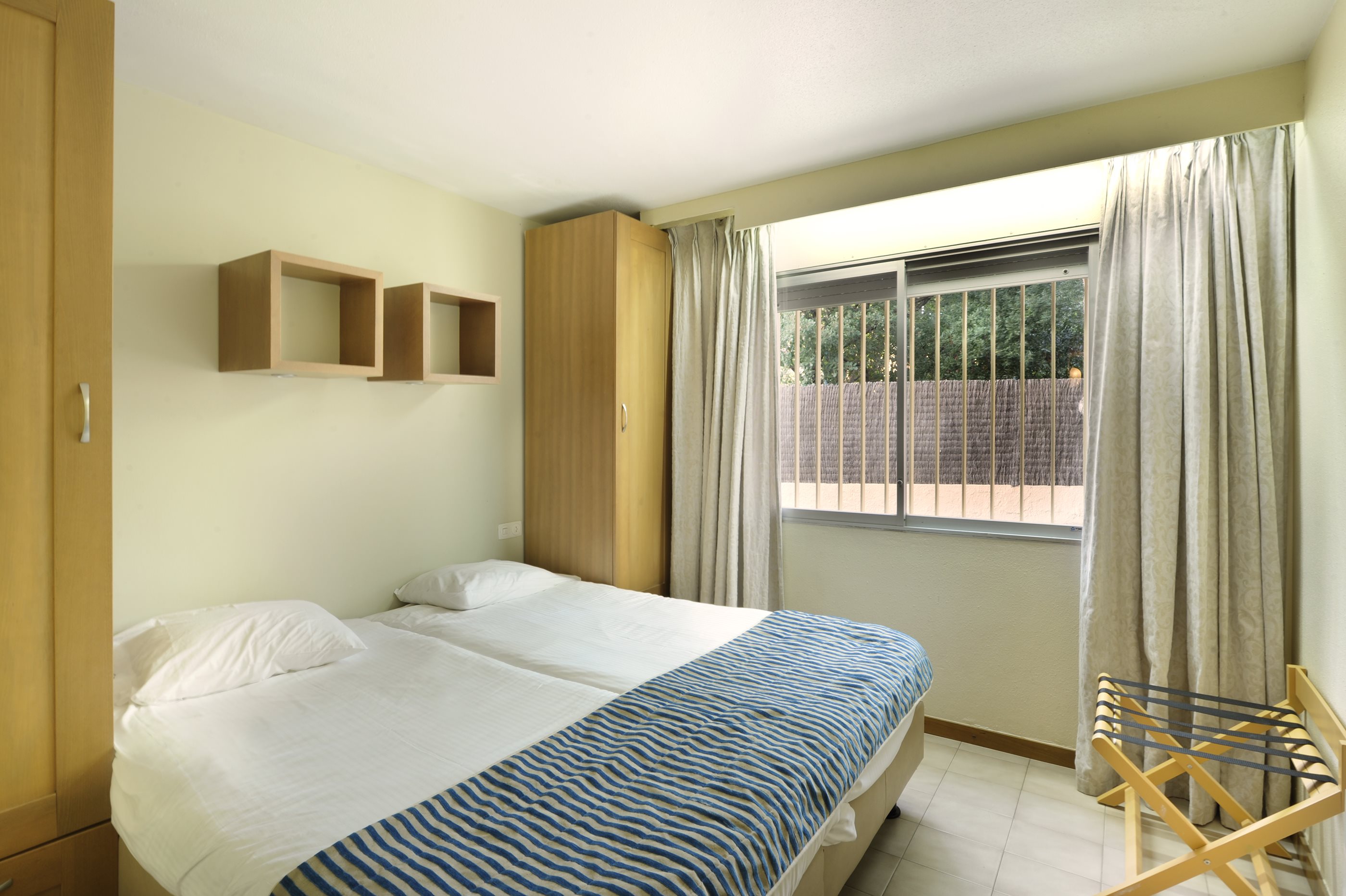 Das 6-Pers. Apartment verfügt über 2 Doppelbettzimmer, 1 Schlafzimmer mit einem Etagenbett, 2 Bäder wovon einer en-suite, ein separates WC, ein gemütliches Wohn-Esszimmer und eine voll ausgestattete Küche. Außerdem SAT-TV, Waschmaschine, Zentralheizung und Safe. Die Wohnungen gehören zu einem nahe gelegenen Hotel und die Gäste haben freien Zugang zum Pool, Dachterrasse und andere Hoteleinrichtungen. Die Wohnungen können auch gebucht werden mit Halbpension für nur € 35 p.P.