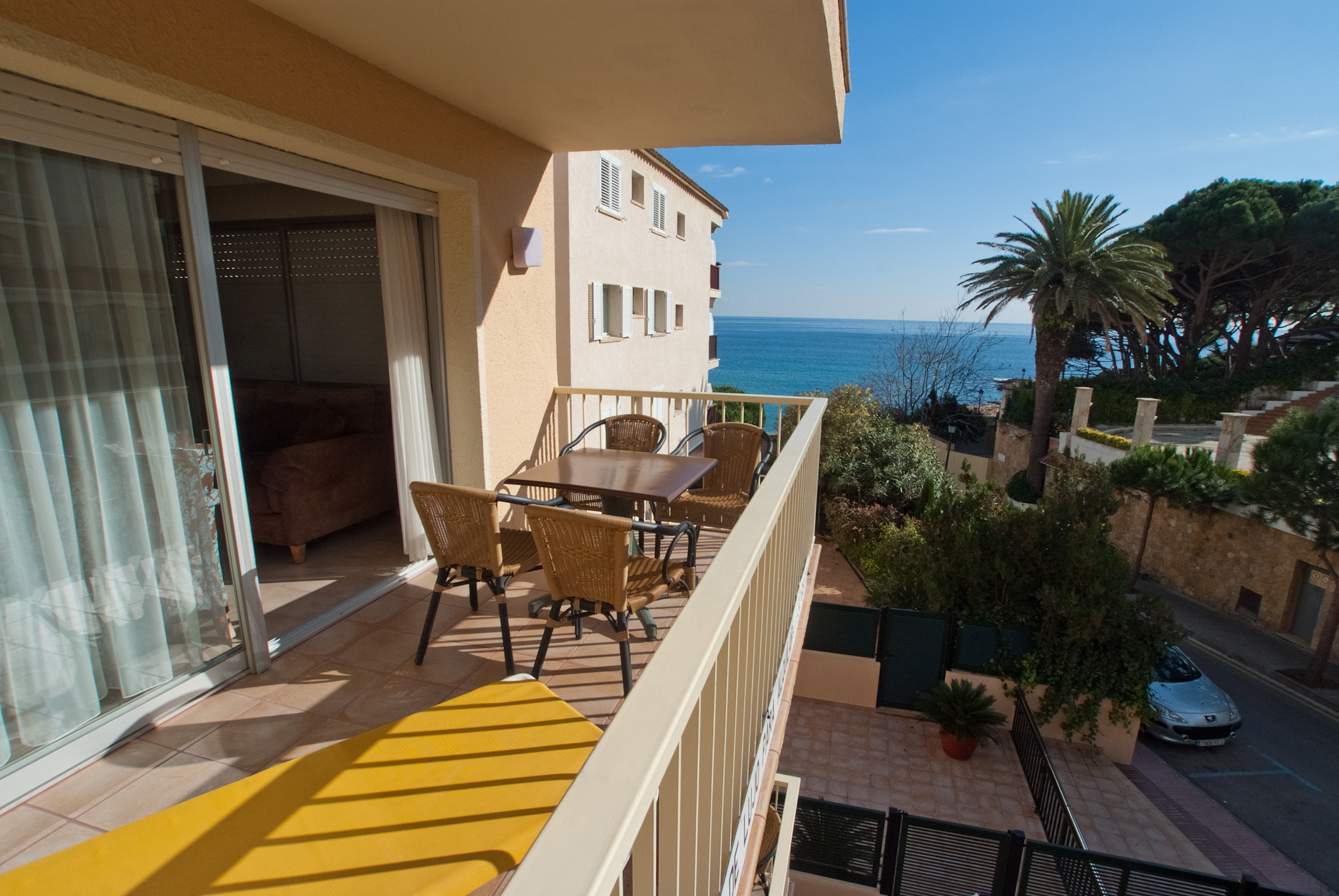 Wonderful apartments on the boulevard in S'Agaró with direct access to the beautiful sandy beach of Sant Pol. Quiet setting just off the boulevard and a balcony or terrace with sea view and very sunny. Spacious interior, quality furniture and equipped with airconditioning and free Wi-Fi. Shops, restaurants and terraces are around the corner or can be reached in just a few minutes on foot. Because of its location at the beach the apartment is great for kids as well. Famous Playa de Aro is just 5 min. away as well.